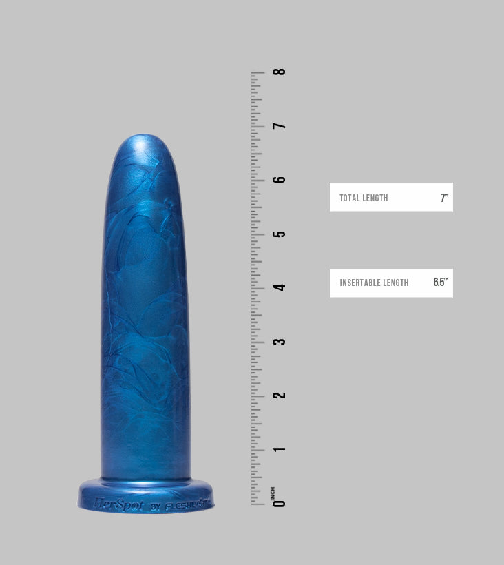 HerSpot Dildos were designed by Fleshlight co-owner Kathy Shubin to provide high-quality toys for women and empower females to embrace their sexuality. The Cobalt Lily dildos are flexible but firm – perfect for everything from gentle play to an intense session. The straight shaft provides for a sleek and slender experience. The Cobalt Lily line of dildos are realistically-sized with three sizing options: small, medium and large. Love yourself with our luxurious line of HerSpot female toys.